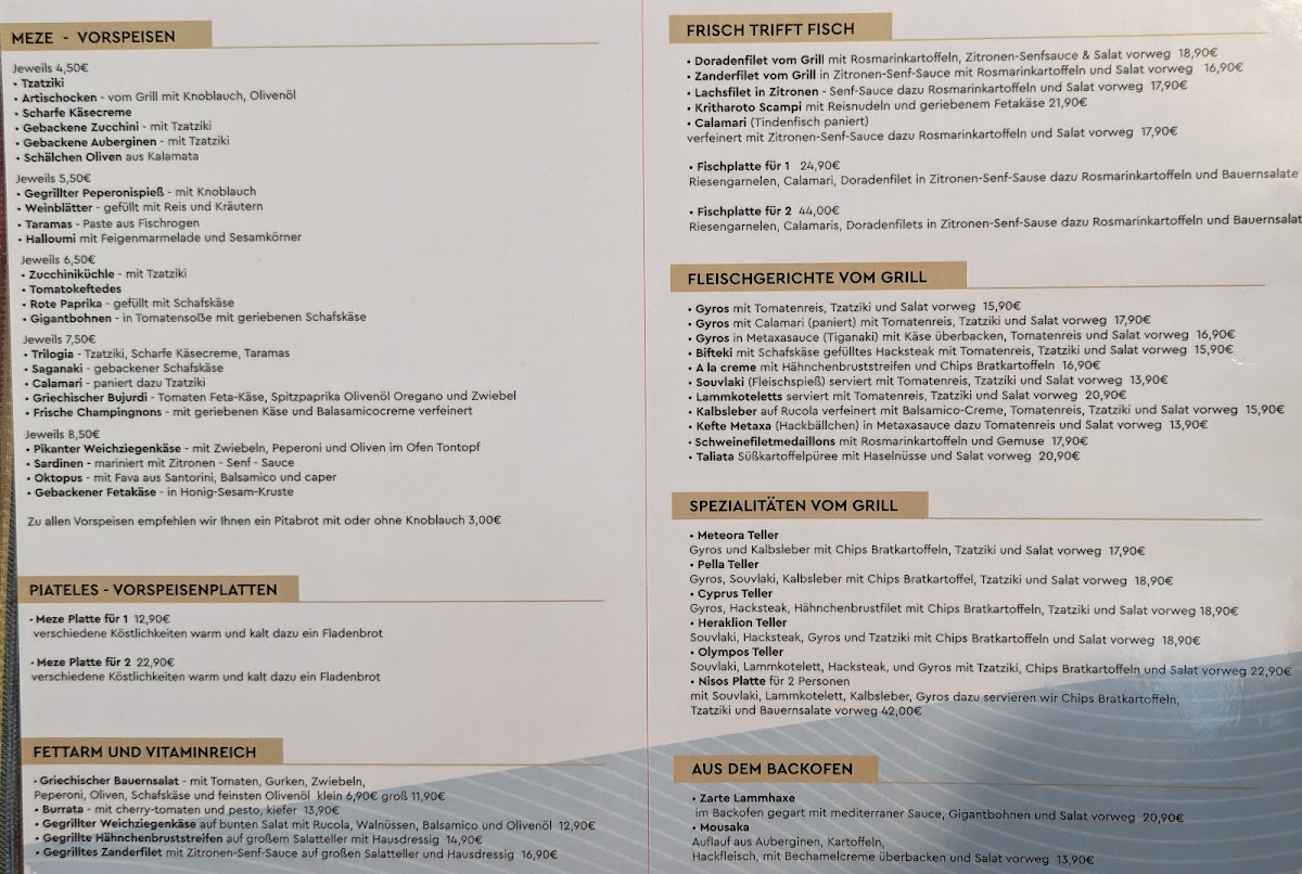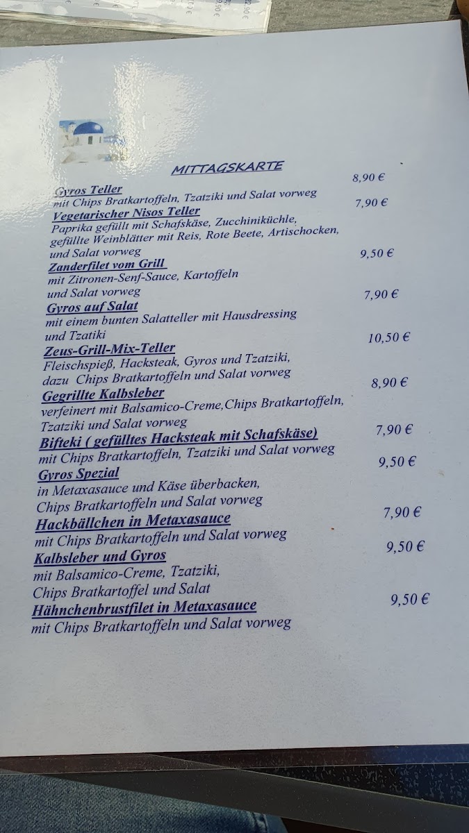 Taverne Nisos 'die griechische Insel in Buchloe' Menu